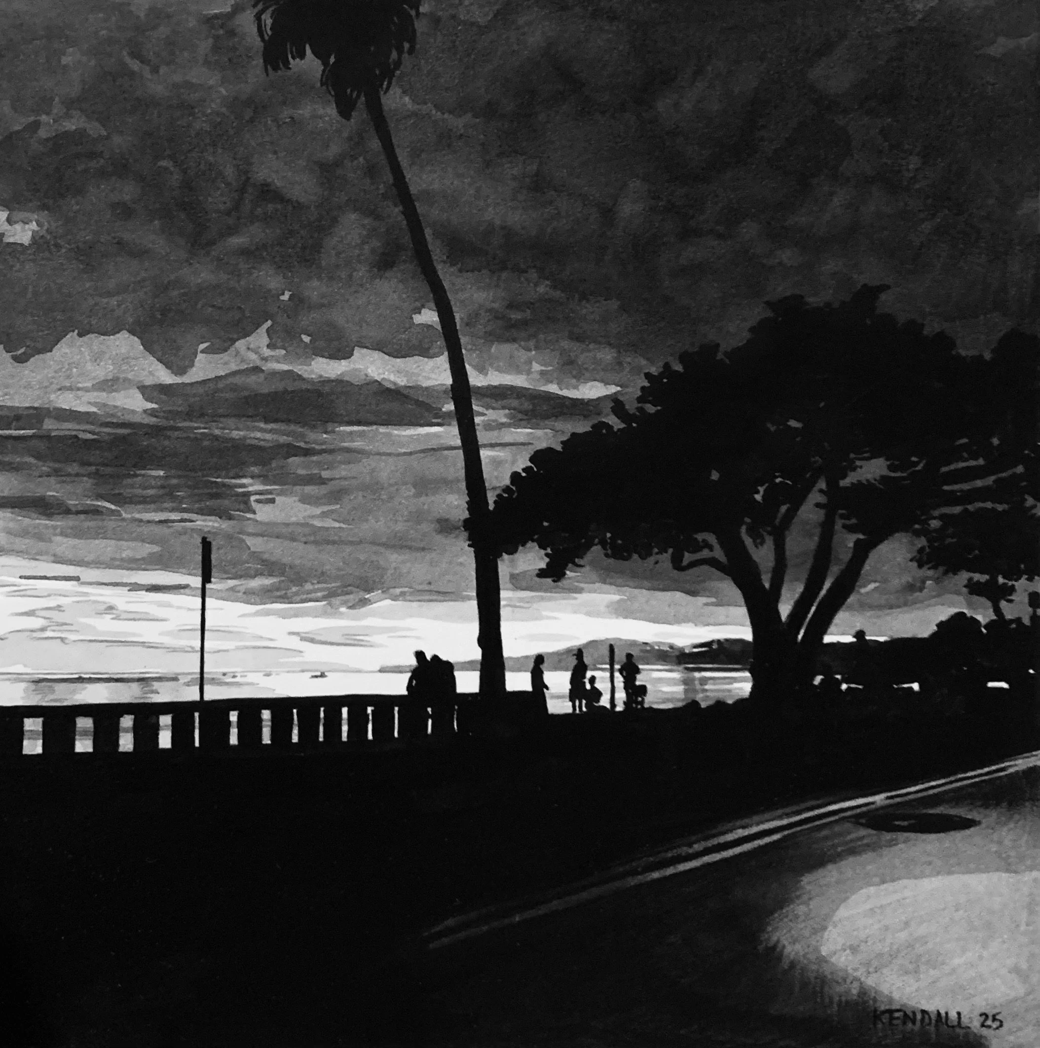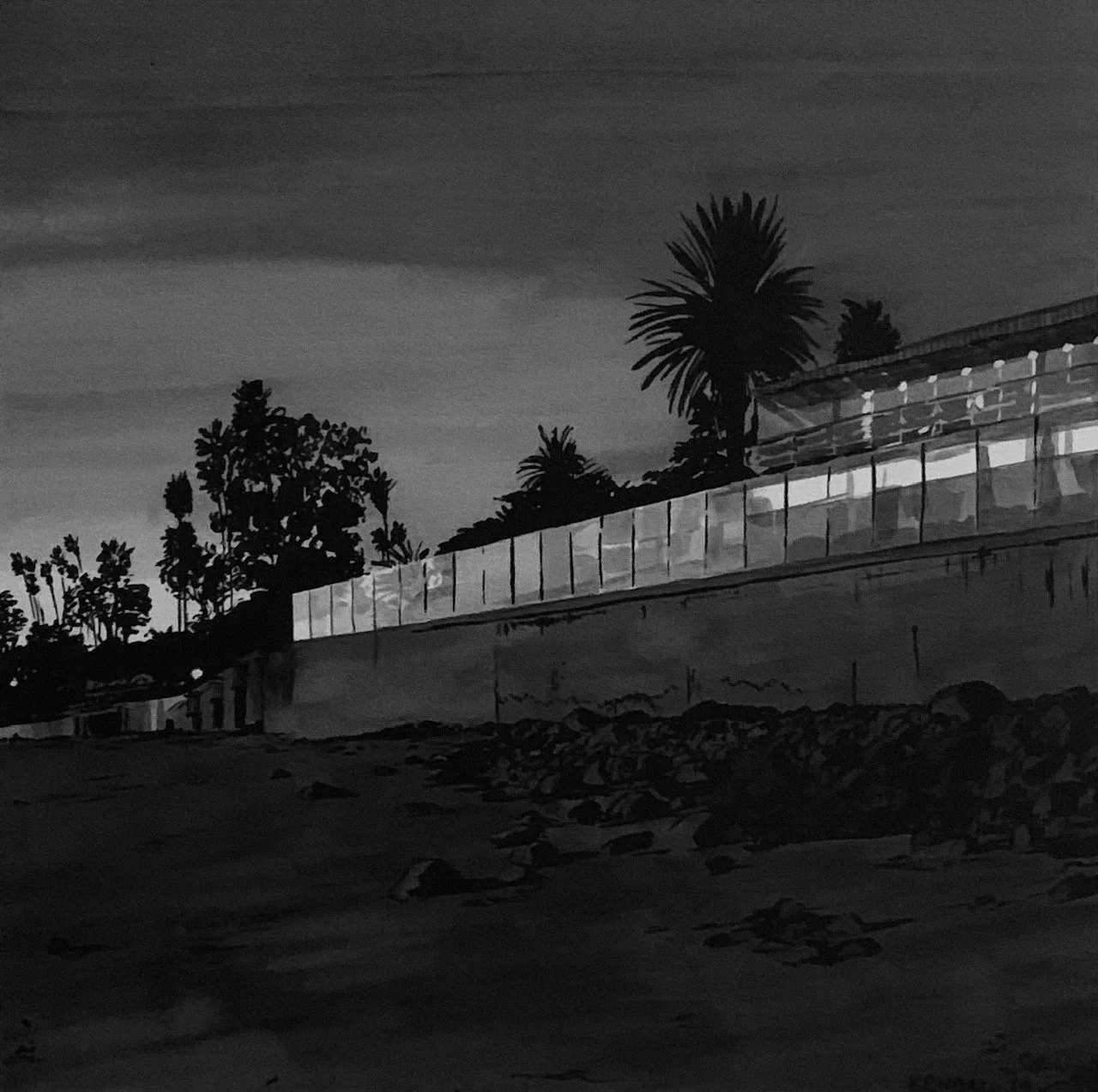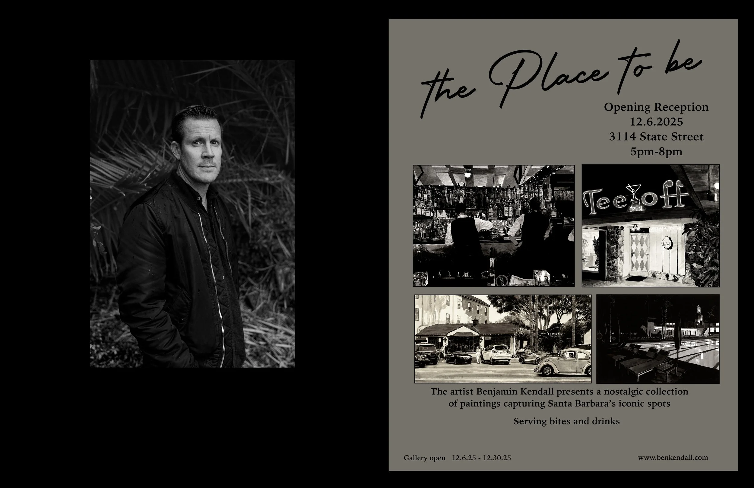 The artist Benjamin Kendall presents a collection of work as a nostalgic exploration of Santa Barbara's classic haunts through nocturnes in black and white. From the relaxed elegance of Lucky’s to the rustic charm of the Tee-Off, The Place to Be takes a nostalgic walk through the places that have defined Santa Barbara's nightlife over the years. Painted with a romantic, dream like quality that blurs the line between past and present, each location feels timeless. The show frames these places not just as modern snapshots but as memories of Santa Barbara.